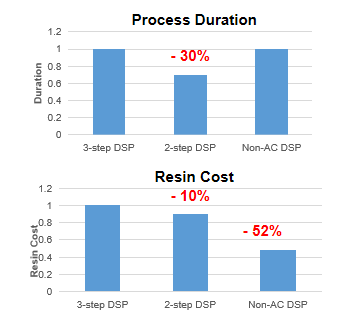 三步法、二步法和非亲和层析的过程持续时间与填料费用对比